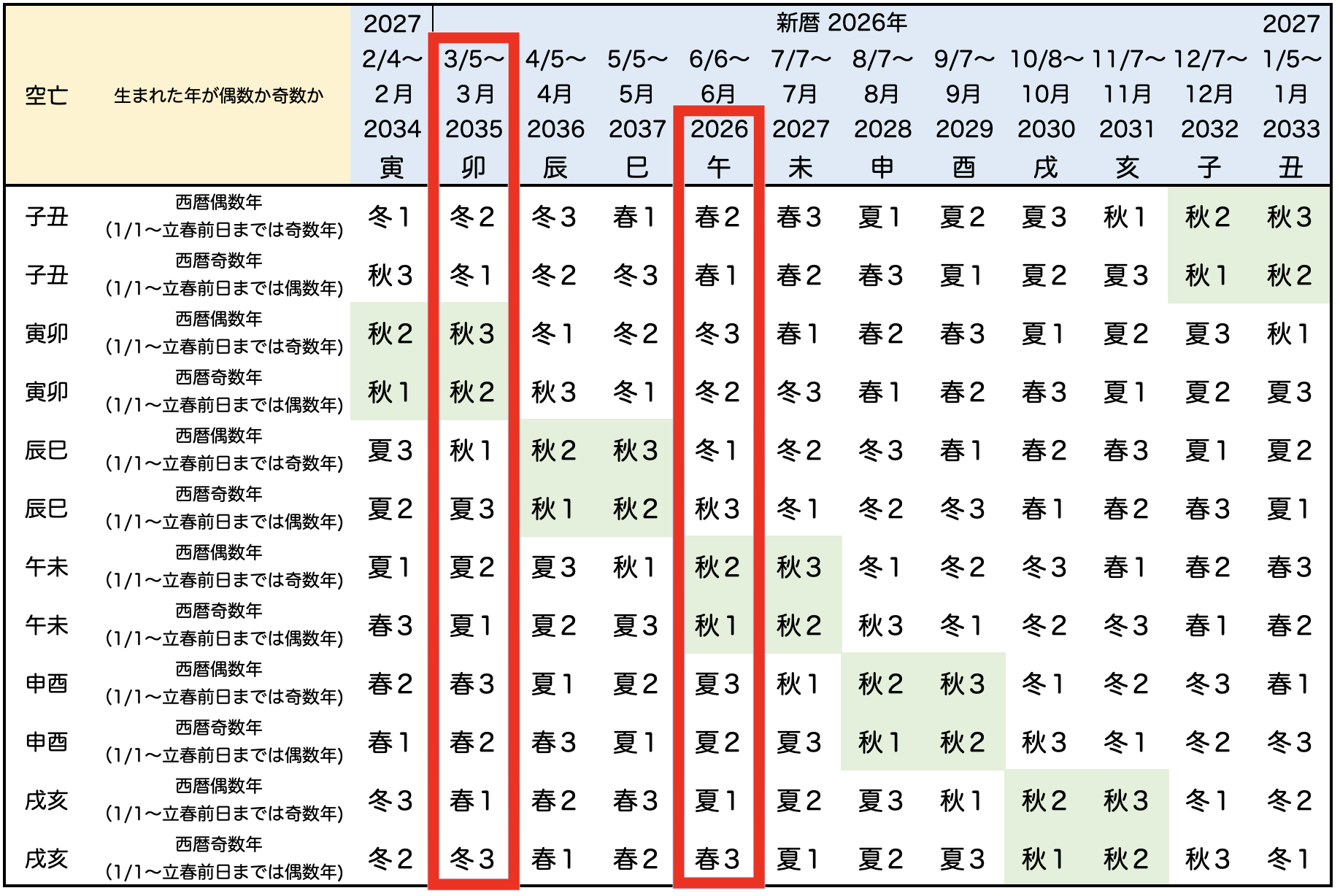 | 春 | 立春(りっしゅん) | 1月節 | 寅 | みずがめ座(水瓶座) | 2026年2月4日 |